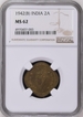 NGC MS 62 graded Nickel Brass Two Annas Coin of King George VI of Bombay Mint of 1942.