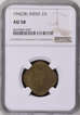 NGC AU 58 graded Nickel Brass Two Annas Coin of King George VI of Bombay Mint of 1942.
