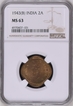 NGC MS 63 graded Nickel Brass Two Annas Coin of King George VI of Bombay Mint of 1943.