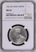 NGC MS 62 graded Silver One Rupee Coin of King George V of Bombay Mint of 1921.