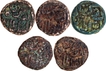 Scarce Madura Sultanat Ala ud din Udauji Shah Lot of Five Copper Paika Or Paisa Coins.