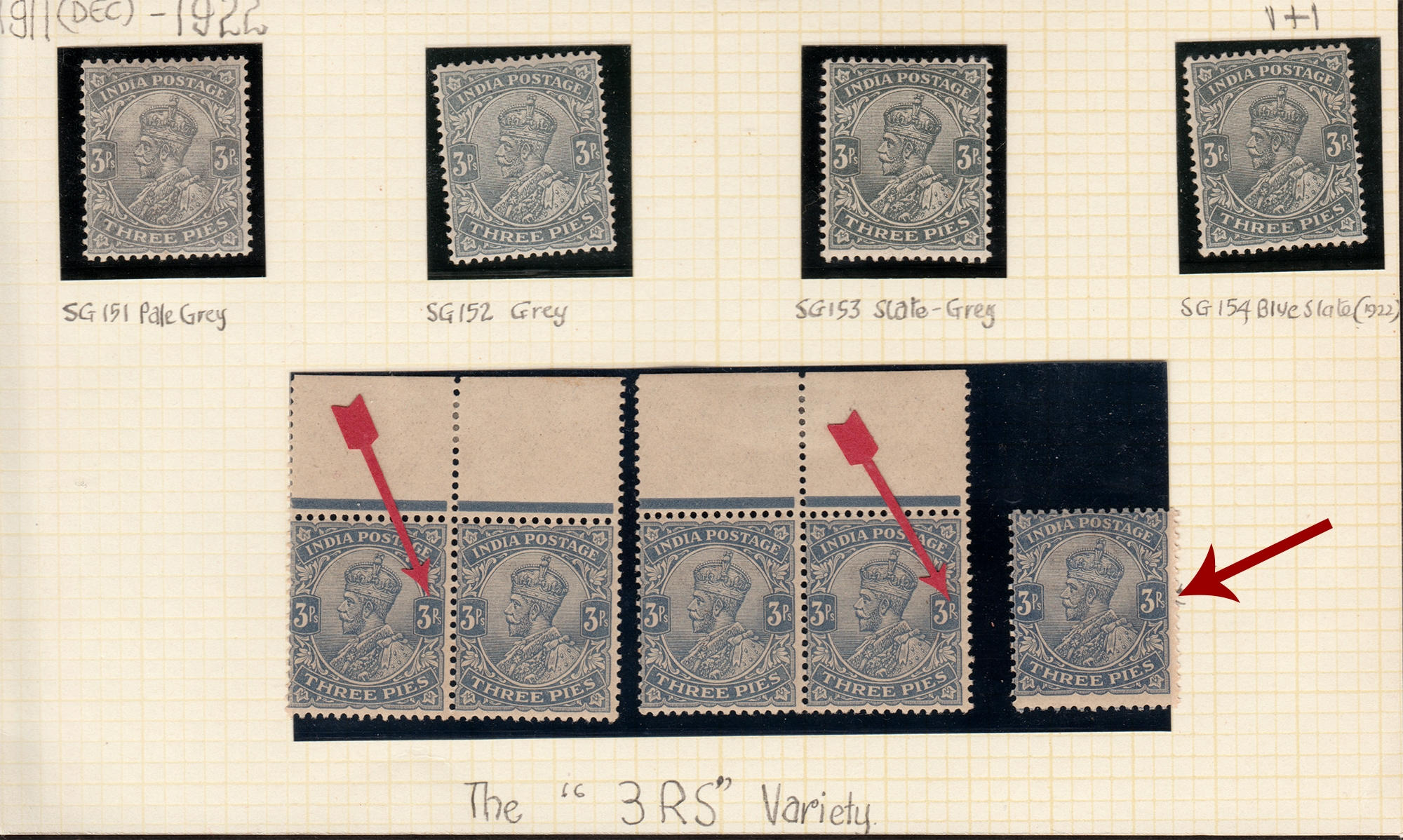 2 Pairs and a single Error Stamps of KGV 3Pies, Rs prin ...