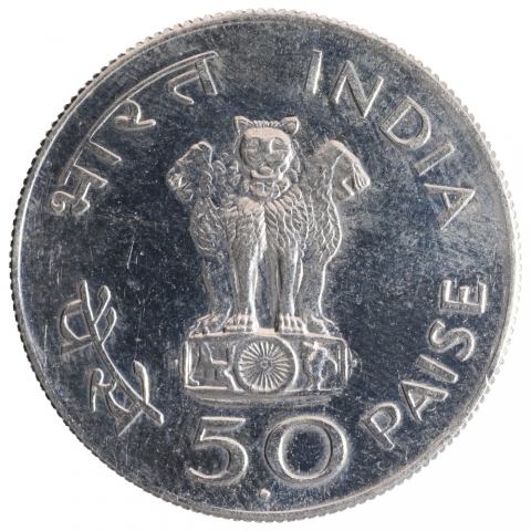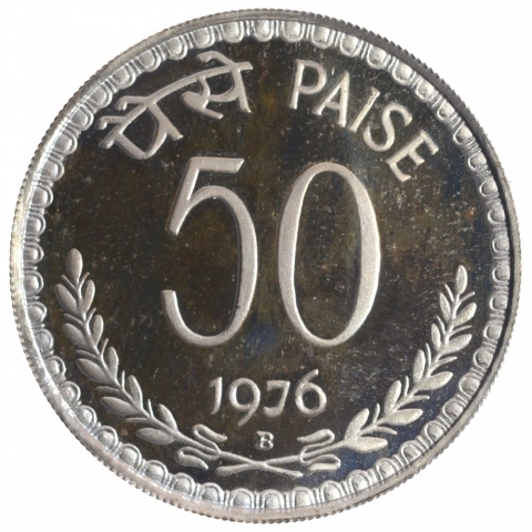Cupro Nickel Fifty Paise Coin of Bombay Mint of Republi ...