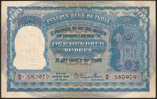 PMG 64 Graded One Hundred Rupees Banknote of 1960 of Re ...