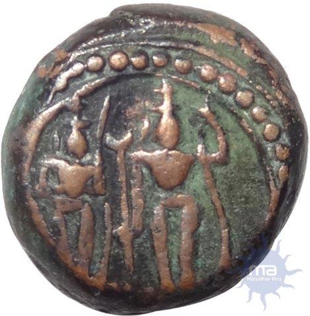 Double Snake symbol of Madurai Nayakas Copper Kasu Coin.