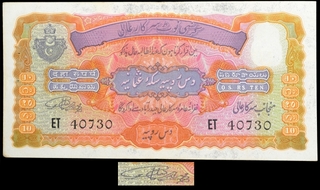 Ten Rupees Note of Hyderabad State Signed by Mehdi Yar ...