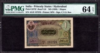 Rare Hyderabad State One Rupee Note signed by Liaqat Ju ...