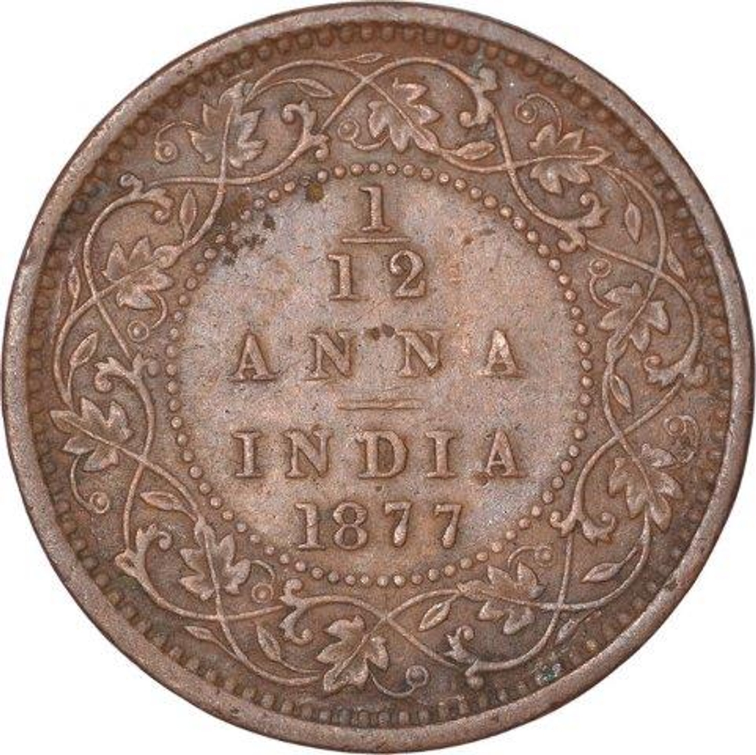 Copper One Twelfth Anna Coin of Victoria Empress of Cal ...