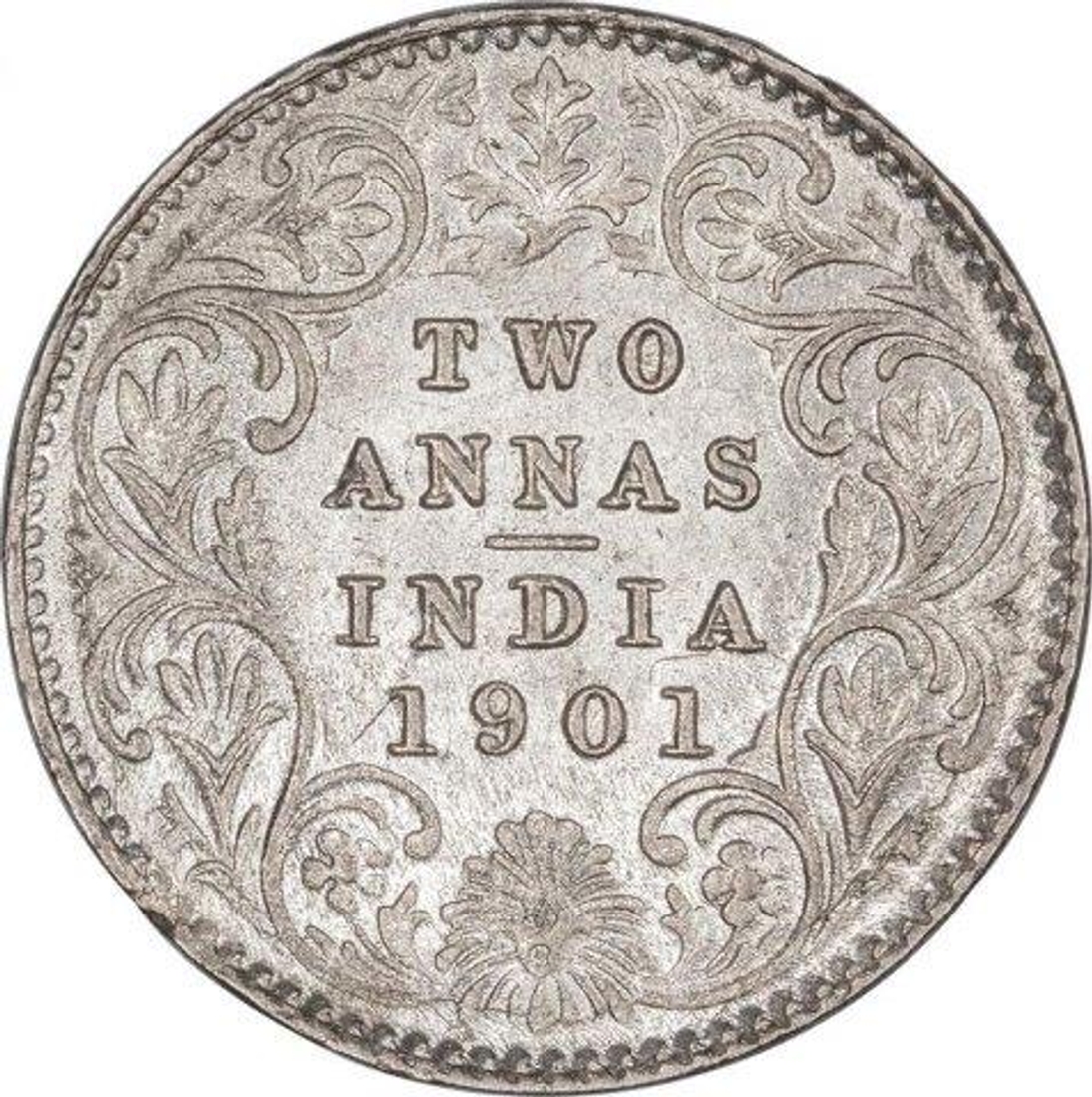 Silver Two Annas Coin of Victoria Empress of Calcutta M ...
