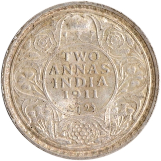 Silver Two Annas Coin of King Edward VII of 1910.