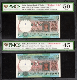 PMCS Graded Duplicate Serial Number Error Five Rupees B ...