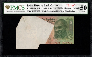PMG Graded Serial Number Printing Error Fifty Rupees B ...