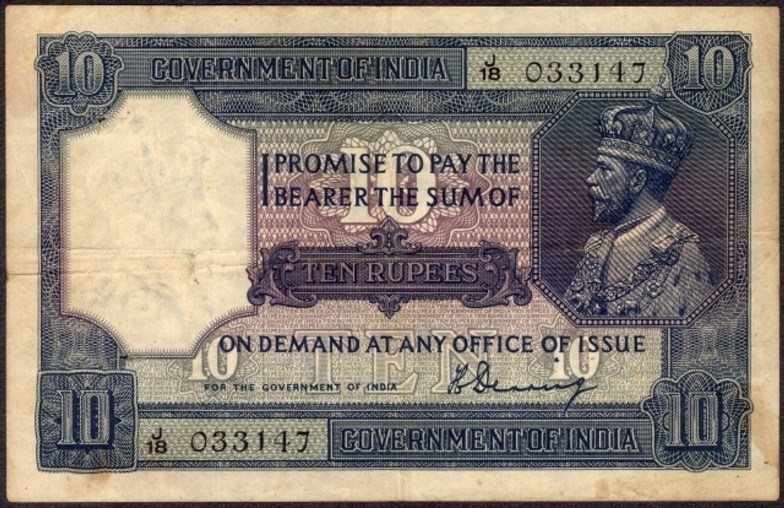 Ten Rupees Bank Note of King George VI of Signed by ...