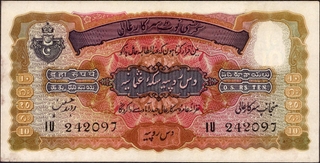 Ten Rupees Banknote of Hyderabad State of 1939 Signed b ...