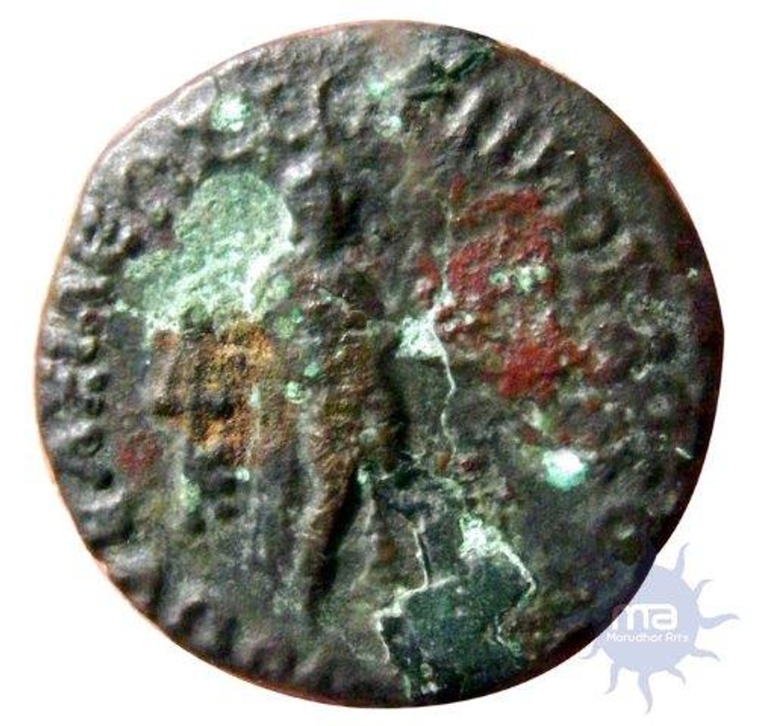 Copper Dramma Coin of Menander I of Indo Greeks.
