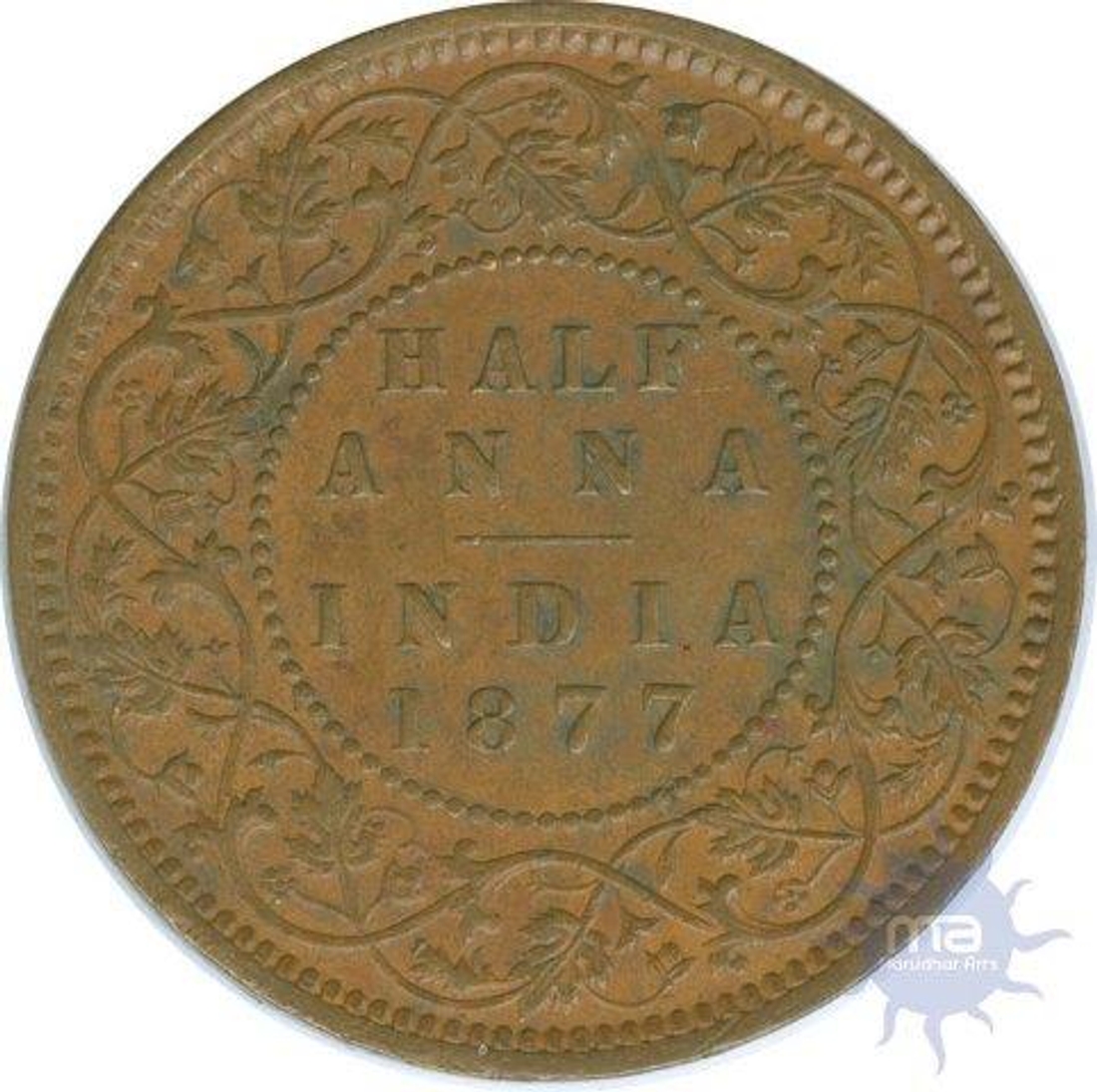 Copper Half Anna Coin of Victoria Queen of 1875.