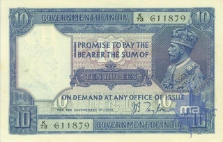 Ten Rupees Bank Note of King George VI Signed by J B Ta ...