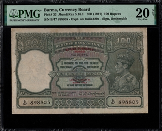 PMG 25 Graded One Hundred Rupees Banknote of King Georg ...