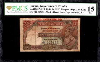 PMG Graded Five Rupees Banknotes of King George VI of 1 ...