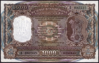 Thousand Rupees Bank Note Signed By N C Sengupta of Bom ...