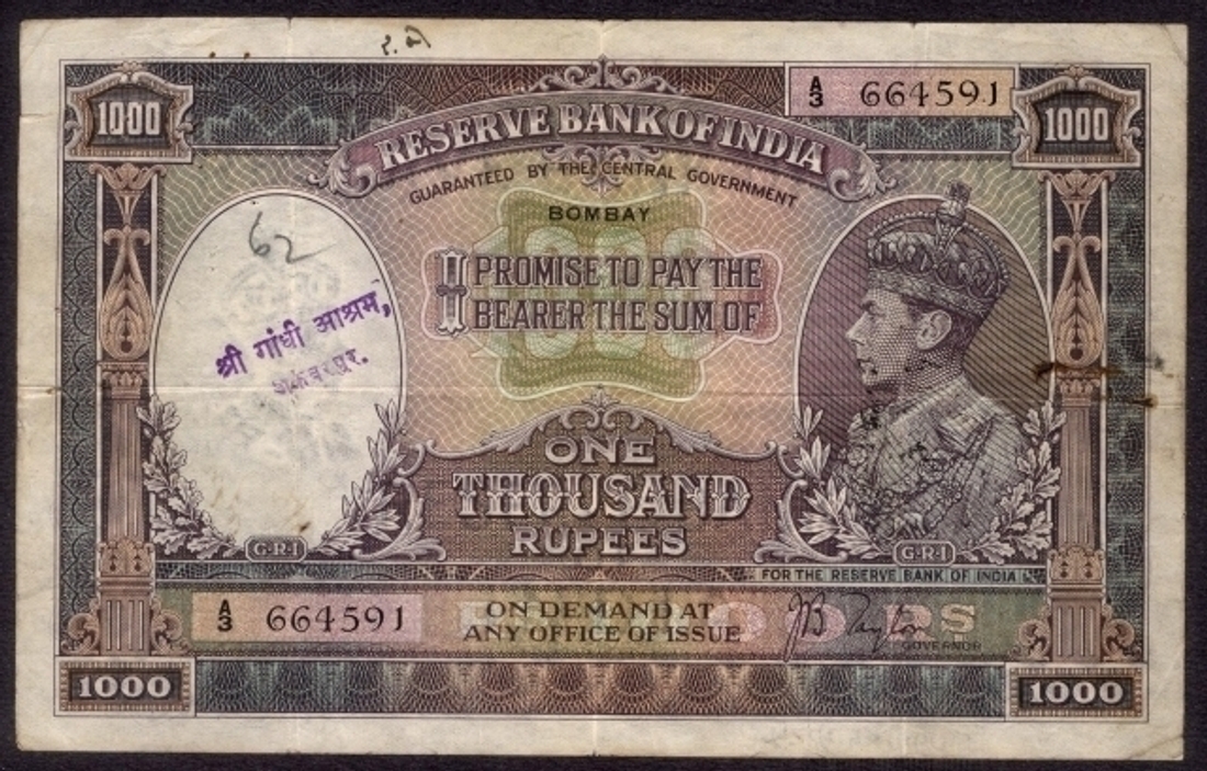 Hundred Rupees Bank Note of King George VI Signed by J. ...
