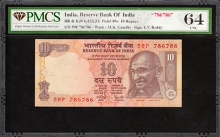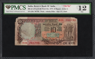 PMCS Graded Ten Rupees 786786 Fancy Number Banknote Sig ...
