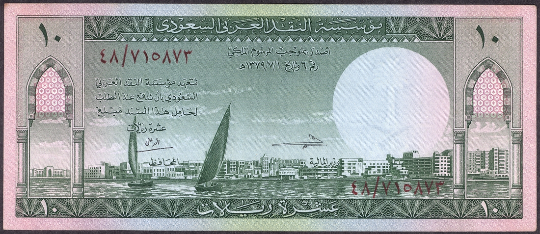 Ten Riyals Banknote of Saudi Arabia of 1961.