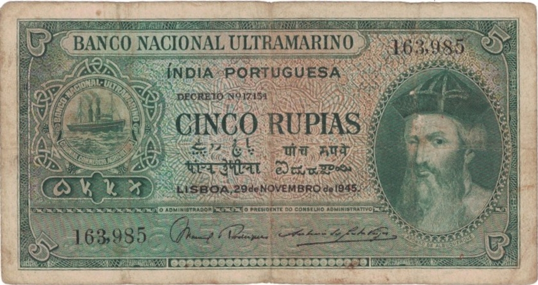 Five Rupias Bank Note of Banco Nacional Ultramarino of ...