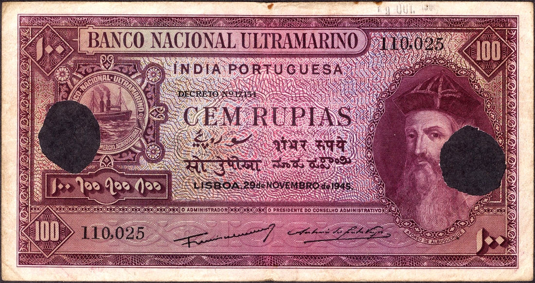 Indo-Portuguese, 100 Escudos, Banco Nacional Ultramarin ...