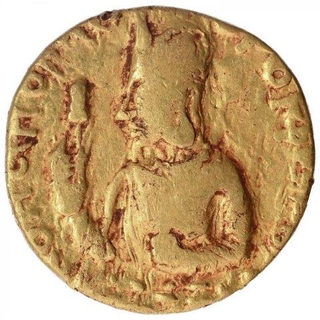 Oesho type Vasudeva I Gold Dinar Coin of Kushan Dynasty.