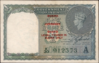 Burma One Rupees Bank Note of King George VI Signed by ...