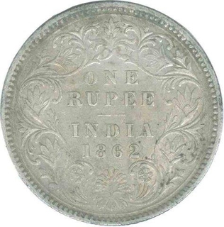 Silver Rupee Coin of Victoria Queen of Bombay Mint of 1862.
