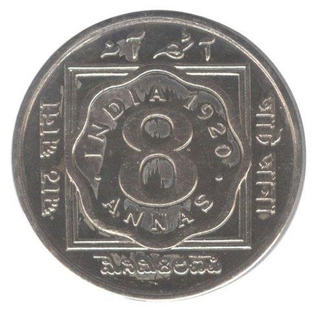 Copper Nickel Eight Annas Coin of King George V of Bomb ...