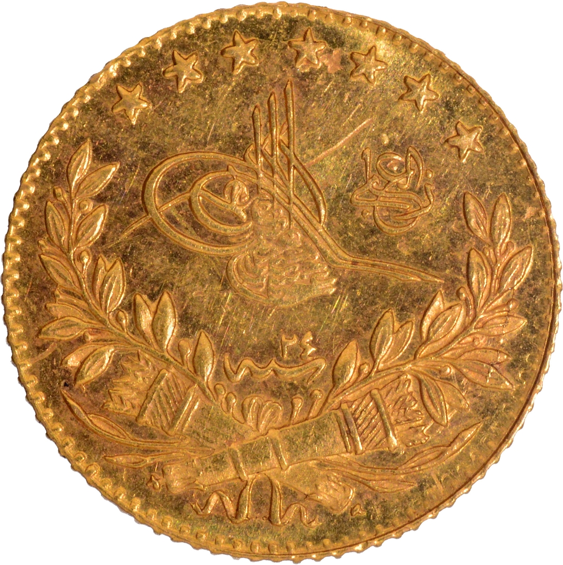 Gold Twenty Five Kurush Coin of Ottoman Empire of Turkey.