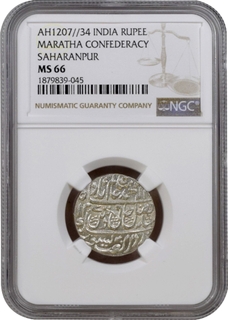 Silver One Rupee Coin of Aurangzeb of Saharanpur Mint.
