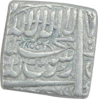 Silver Square One Rupee Coin of Akbar of Ahmadabad Mint.