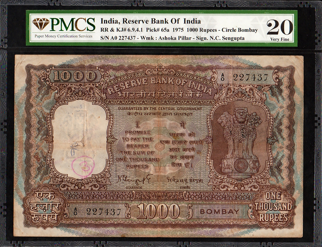 Thousand Rupees Bank Note of Signed by P C Bhattacharya ...